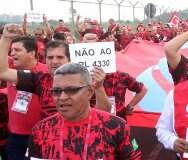 Em Guarulhos, onde participam de congresso da categoria, metalúrgicos fizeram uma passeata até o aeroporto internacional de Cumbica.