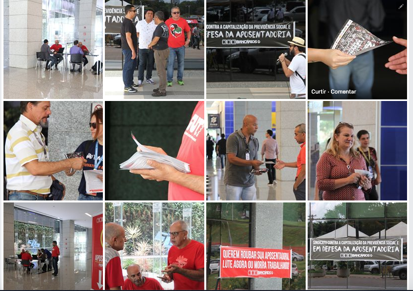 Em Brasília, o Sindicato promoveu um ato no edifício do Banco do Brasil na 202 Norte, onde, além de espalhar faixas e fazer e entrega de material específico, montou um "aposentômetro", pelo qual os bancários puderam calcular os prejuízos que podem vir a sofrer caso a reforma seja aprovada.