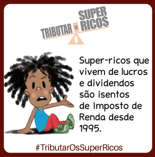Publicação nessa rede social lembra, por exemplo, que o Brasil é o único país (além da Estônia) que não cobra imposto sobre lucros e dividendos distribuídos entre sócios e proprietários de empresas. E que esse absurdo beneplácito aos do topo da pirâmide social prevalece desde 1995.
