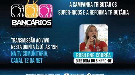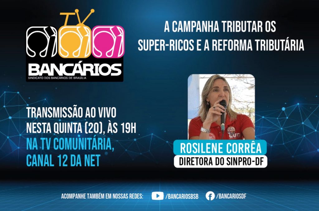 O TV Bancários desta quinta-feira (20) tem como convidada a diretora de Finanças do Sindicato dos Professores do Distrito Federal (Sinpro-DF), Rosilene Corrêa. O tema em discussão será Reforma Tributária, um dos grandes desafios na luta dos trabalhadores e da sociedade por distribuição de renda e redução das desigualdades sociais.