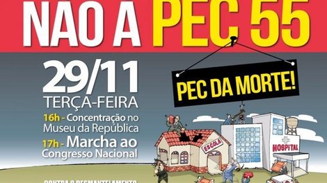 No Congresso, a base aliada do presidente ilegítimo Michel Temer corre contra o tempo para aprovar a Proposta de Emenda à Constituição (PEC) 55, que congela os gastos na Saúde, Educação e outros investimentos sociais durante 20 anos. Nas ruas, o povo, que resiste ao golpe, mostra que não dará arrego a Temer e demais usurpadores de direitos. Nesta terça (29), mais uma prova desta afirmação será dada, nas ruas de Brasília. Trabalhadores, estudantes,