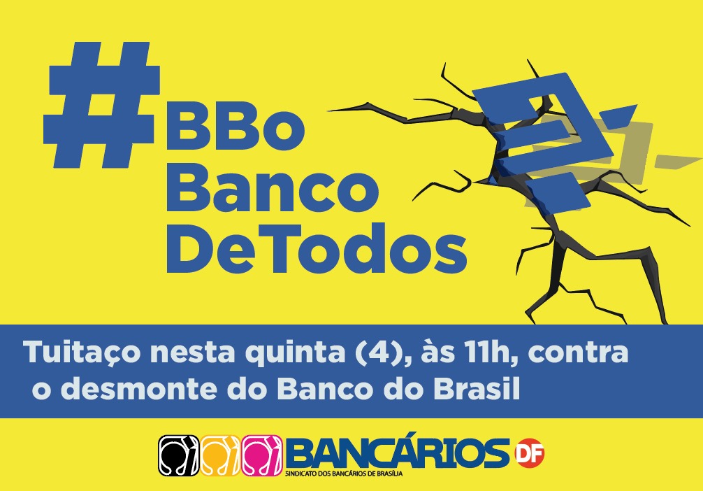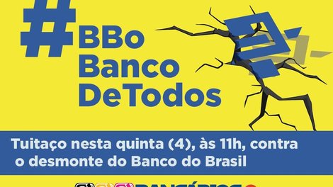 A luta contra o desmonte que faz avançar o projeto do governo de privatização do Banco do Brasil exige ações permanentes de protesto, com envolvimento do funcionalismo de todo o país. Nesta quinta-feira (4) tem novo tuitaço em defesa do banco e dos funcionários, às 11h, usando a #BBoBancoDeTodos.
