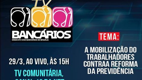 A luta contra a reforma da Previdência encomendada por Bolsonaro não pára. Nesta sexta-feira (29), o TV Bancários na TV Comunitária exibirá um compilado de produções e entrevistas que colocam em xeque o projeto danoso do presidente. O programa será transmitido ao vivo pela TV Comunitária (canal 12 da Net) e pelas redes sociais do Sindicato.