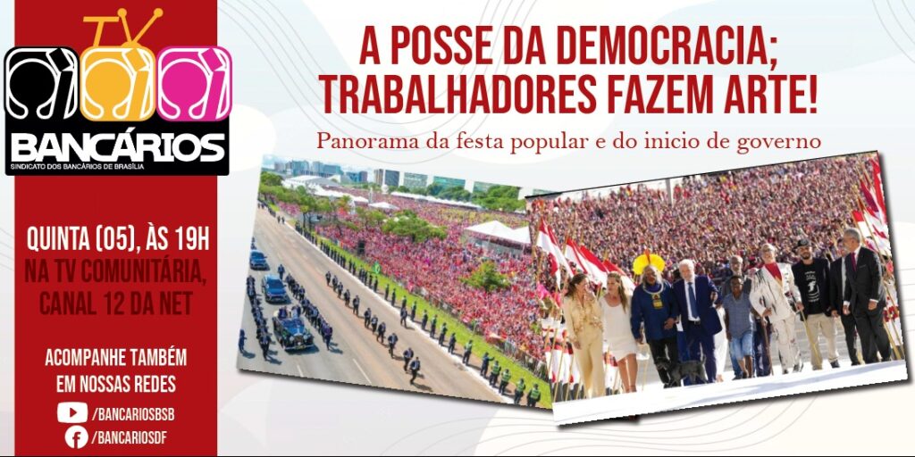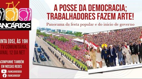 O TV Bancários desta primeira quinta-feira do ano (05) tem como tema “A posse da democracia; trabalhadores fazem arte!”, um panorama da festa popular do dia 1º de janeiro, em Brasília, e do início do governo Lula.