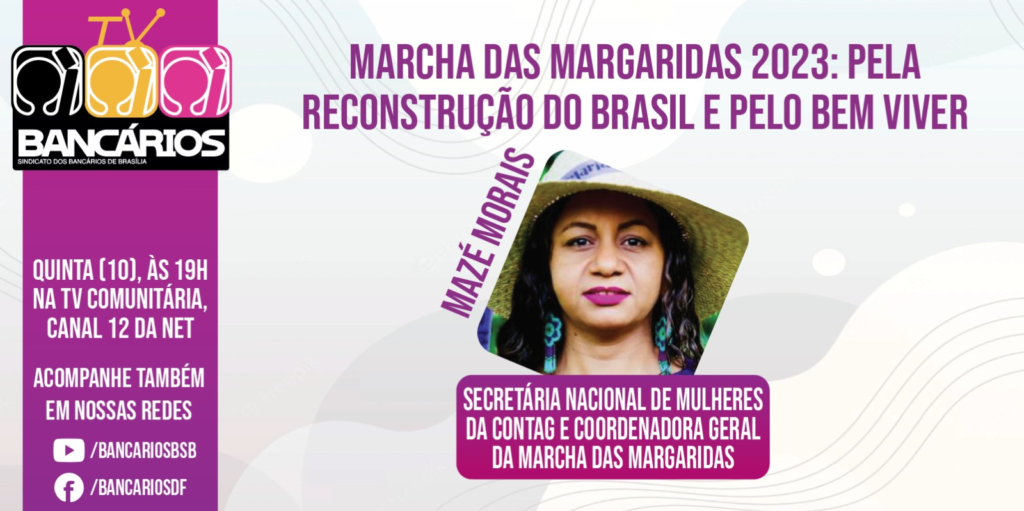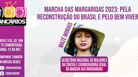 O TV Bancários desta quinta-feira (10) traz os passos da organização da 7ª Marcha das Margaridas 2023, que chega a Brasília na próxima semana, com participação de trabalhadoras rurais oriundas de todas as regiões do país, para ações junto aos poderes e às instituições da República, nos dias 15 e 16 de agosto.