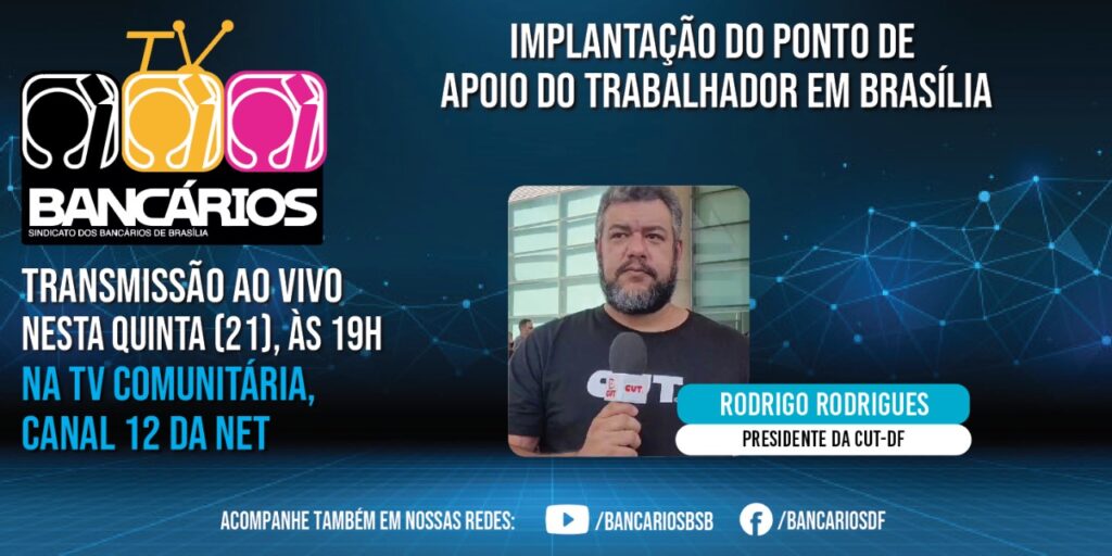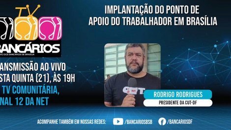 O TV Bancários desta quinta-feira (21) tem como tema a implantação do Ponto de Apoio do Trabalhador em Brasília e as ações da CUT por garantia de trabalho decente a categorias submetidas a condições precárias. O convidado do programa é o presidente da CUT-DF, Rodrigo Rodrigues.