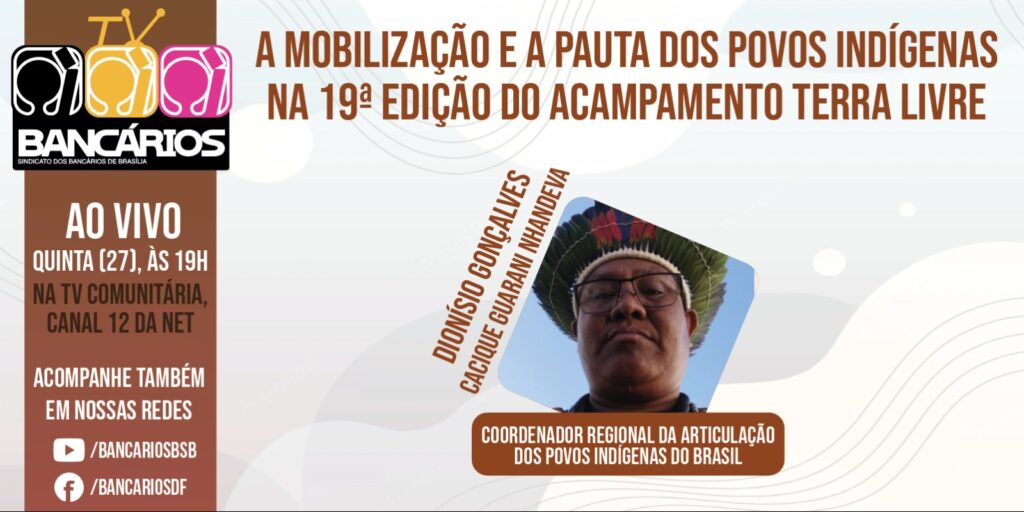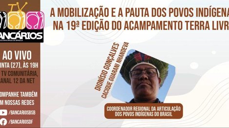 O TV Bancários trata nesta quinta-feira (27), às 19h, da mobilização e pauta dos povos indígenas na 19ª edição do Acampamento Terra Livre, que acontece em Brasília ao longo desta semana com o tema “O futuro indígena é hoje. Sem demarcação, não há democracia!”. O encontro trouxe à capital federal mais de 6 mil indígenas de diferentes regiões do Brasil para discutir e apresentar pautas relacionadas a demarcação de territórios, combate à violência e demandas ambientais e culturais.