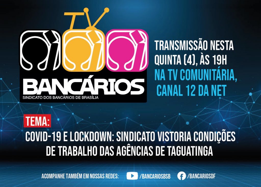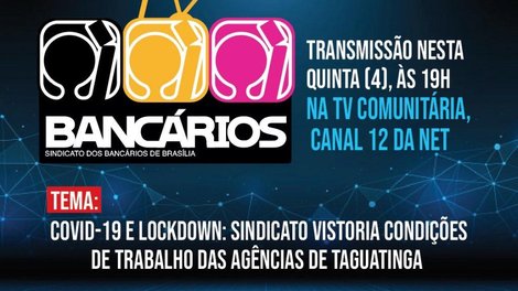 Esta semana, o Sindicato percorreu todas as agências bancárias de Taguatinga e, nesta quinta-feira (4), o TV Bancários na TV Comunitária de Brasília apresenta o resultado desta ação de respeito à vida e por condições de trabalho. O programa vai ao ar a partir das 19h pela página do Sindicato no Facebook.
