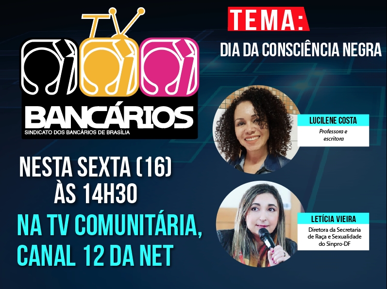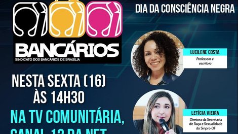 Para abordar o tema, de fundamental importância para a construção da sociedade brasileira, o TV Bancários desta sexta-feira (16) recebe a diretora da Secretaria de Raça e Sexualidade do Sinpro-DF, Letícia Vieira Montandon Bento, e a professora e escritora Lucilene Costa e Silva.