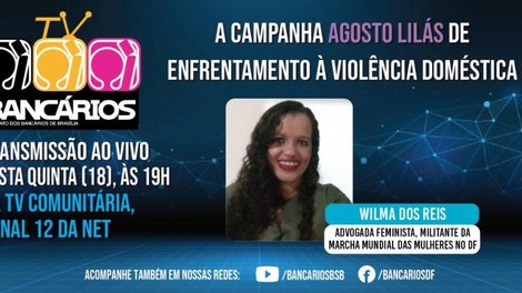 O TV Bancários desta quinta-feira (18) tem como tema a campanha Agosto Lilás de enfrentamento à violência contra as mulheres. O programa integra as atividades de lançamento da cartilha “Viva sem Violência” publicada pelo Sindicato em comemoração aos 16 anos da Lei Maria da Penha.