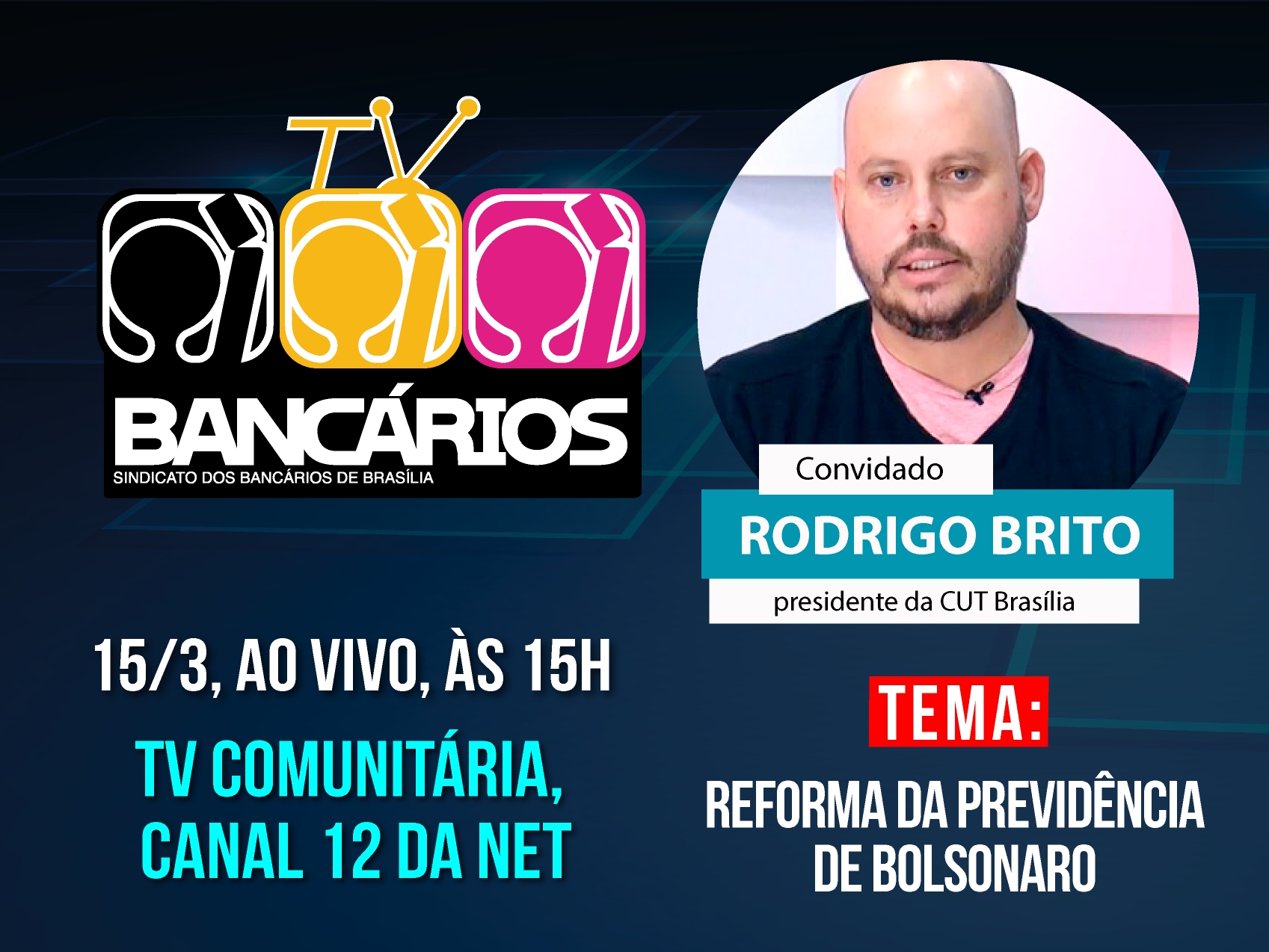 Nesta sexta-feira (15), o TV Bancários recebe o presidente da CUT Brasília, Rodrigo Britto, para falar sobre a proposta de deforma da Previdência, enviada por Bolsonaro ao Congresso Nacional. O programa será transmitido ao vivo do estúdio da TV Comunitária de Brasília (canal 12 da Net) a partir das 15h. Acompanhe pelas redes sociais do Sindicato.