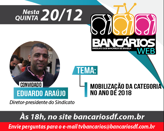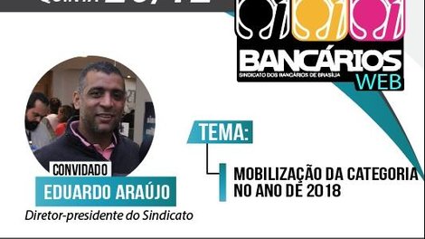 Na edição desta quinta-feira (20), o programa TV Bancários Web recebe o presidente do Sindicato, Eduardo Araújo, para falar sobre as principais pautas de mobilização da categoria no ano de 2018. O programa será transmitido pelas redes sociais do Sindicato a partir das 18h.