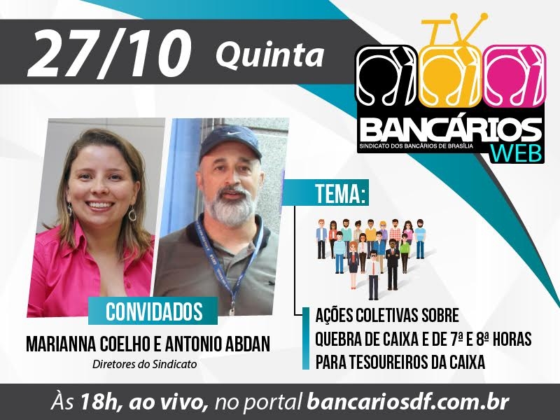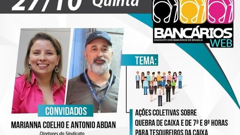 Como prévia do evento, o programa TV Bancários Web conversará com os diretores do Sindicato Antonio Abdan (secretário de Comunicação e Divulgação) e Marianna Coelho (secretária de Assuntos Jurídicos). O programa será exibido, a partir das 18h, pelo portal do Sindicato e pelas redes sociais da entidade.
