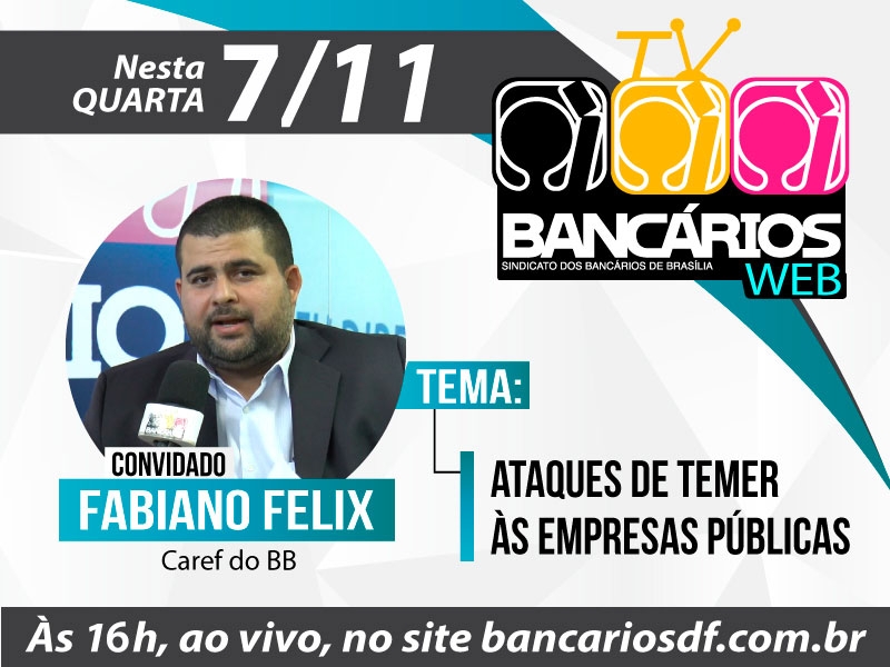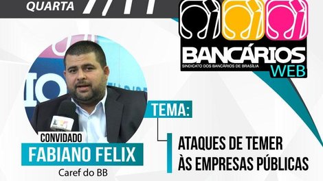 O programa TV Bancários Web desta terça-feira (7) recebeu o representante eleito dos funcionários do BB no Conselho de Administração, Fabiano Felix, para um debate sobre as ofensivas privatistas de Michel Temer às empresas públicas.