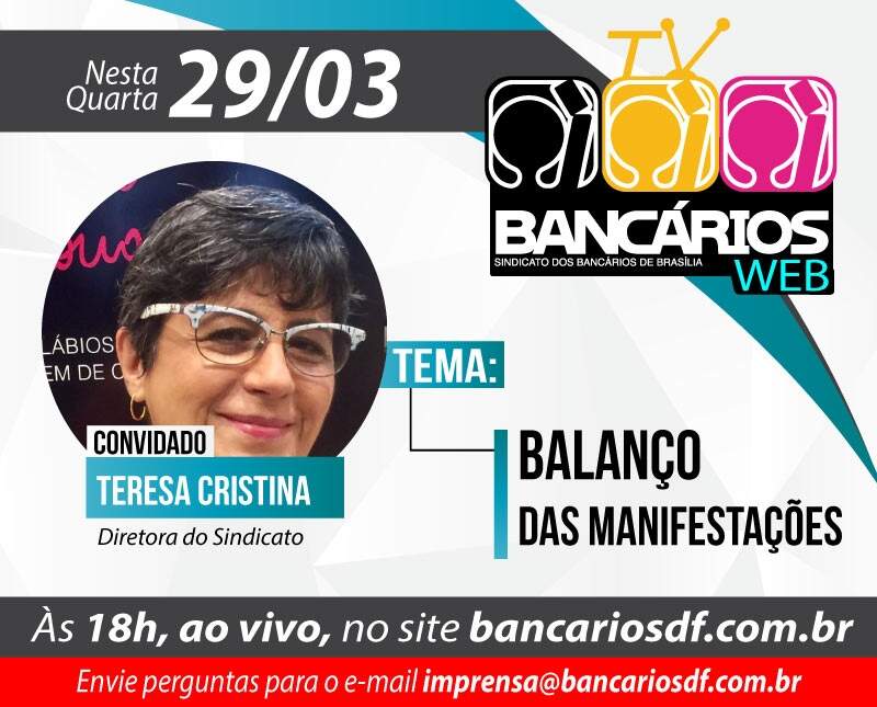 As manifestações em defesa dos direitos dos trabalhadores e contra retrocessos sociais promovidos pelo governo Temer é tema no TV Bancários Web desta quarta-feira (29). Com início às 18h, o programa recebe a diretora do Sindicato Teresa Cristina.
