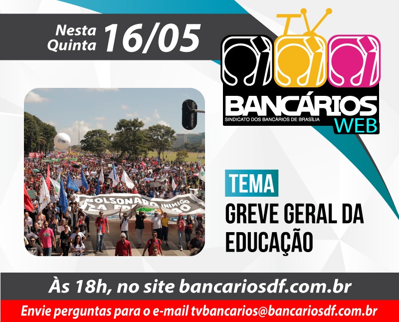 O principal recado ao governo de Bolsonaro foi de que a educação livre, pública e de qualidade deve ser prioridade, e que os estudantes, professores e os diversos segmentos da sociedade civil não abrirão mão desse direito. Em Brasília, a mobilização reuniu mais de 50 mil pessoas na Esplanada dos Ministérios. Para participar do programa, basta enviar dúvidas ou sugestões para o e-mail tvbancarios@bancariosdf.com.br.