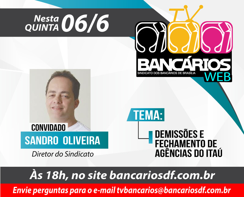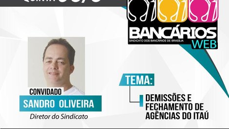 Bancárias e bancários do Itaú estão em luta pela garantia dos empregos, contra as demissões e por um plano de saúde que atenda às suas necessidades. Nesta quinta-feira (6), o programa TV Bancários Web recebe o bancário do Itaú e diretor do Sindicato Sandro de Oliveira, para falar sobre a pauta de luta dos funcionários do banco. O programa vai ao ar às 18h pelas redes sociais do Sindicato.