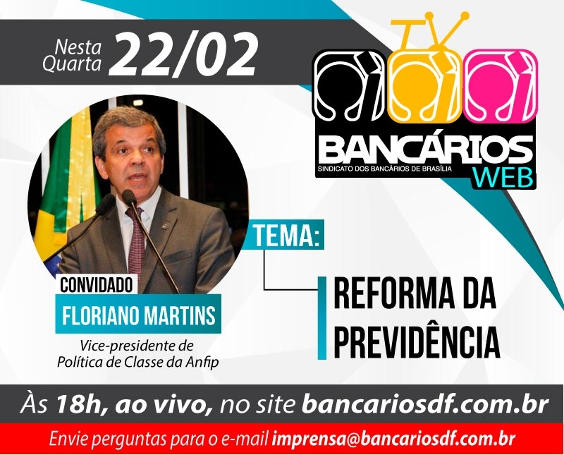 O programa TV Bancários Web desta quarta-feira (22) recebeu o vice-presidente de Política de Classe da Associação Nacional da Associação dos Auditores Fiscais da Receita Federal do Brasil (Anfip), Floriano Martins, para debater as ameaças da reforma da Previdência Social, proposta pelo governo Temer.