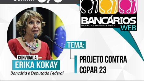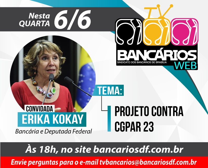 Em contraposição aos ataques de Michel Temer aos planos de saúde dos funcionários de empresas estatais, a bancária e deputada federal Erika Kokay (PT-DF) apresentou o Projeto de Decreto Legislativo (PDC 956/2018) para sustar os efeitos da resolução 23 da CGPAR. Nesta quarta-feira (6), a partir das 18h, a deputada explica mais sobre proposta no programa TV Bancários Web.