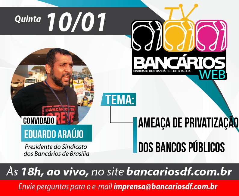 O assunto é pauta da TV Bancários Web nesta quinta-feira (10), com o presidente do Sindicato, Eduardo Araújo. O programa será transmitido ao vivo, a partir das 18h, pelas redes sociais da entidade.