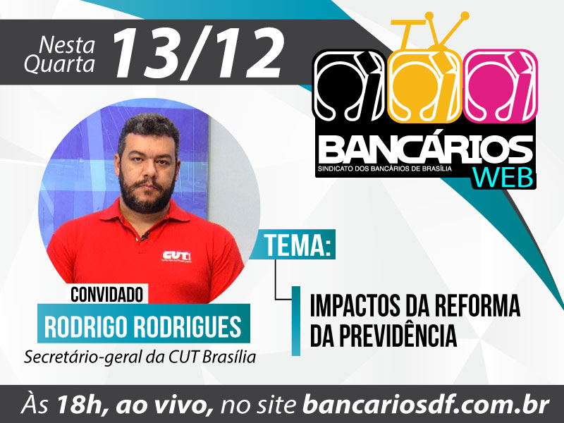 O TV Bancários Web desta quarta (13) reforça as consequências da reforma da Previdência. Como convidado essa edição do programa recebe Rodrigo Rodrigues, secretário-geral da CUT Brasília.