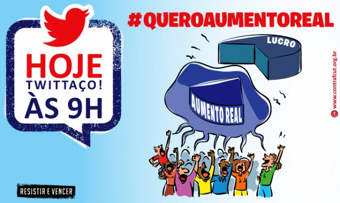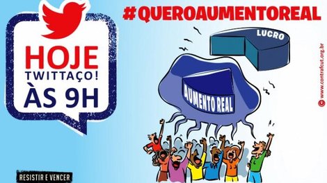 Com a hashtag #QueroAumentoReal, os trabalhadores se mobilizarão no Twitter para levar o tema aos trending topics (lista de assuntos do momento) e ganhar visibilidade na rede social.