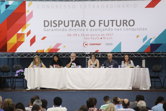 “A categoria bancária é muito impactada pelas novas tecnologias. O trabalho se transforma ao longo do tempo e neste momento há uma mudança muito radial em todo o mundo. Está surgindo o proletariado precário, vai existir uma grande massa de trabalhadores que vai ficar com os piores salários e os priores trabalhos. Além da tecnologia, estamos vivendo uma crise econômica e um ataque brutal de retirada de direitos e previdência que complica ainda mais a situação, “ analisou Roberto von der Osten, presidente da Contraf-CUT, durante o painel.