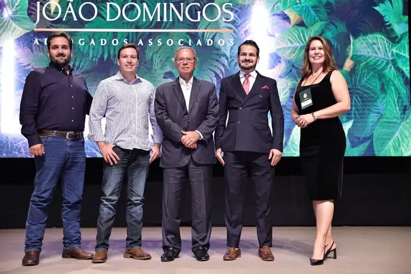 A denúncia mostra que o escritório João Domingos tem profundas ligações com o setor, sendo bastante conhecido no agronegócio, representando grandes empresas em processos tributários, societários e de recuperação judicial. “Os advogados que lideram o escritório não escondem sua inclinação política. Destacam-se o sócio fundador, João Domingos da Costa Filho, e seu filho e CEO, Leandro Marmo Carneiro Costa. Este último tem se notabilizado como comentarista político, compartilhando com frequência suas opiniões antipetistas e contra os movimentos sociais, a exemplo de seu comentário onde classificou o MST como um grupo ilegal. Em julho de 2024, o escritório João Domingos organizou em Goiânia o evento “Agro em Debate”, que teve como principal atração uma palestra do ex-ministro da economia Paulo Guedes, aquele mesmo que, referindo-se ao BB, disse que tinha que “vender essa p... logo”. O evento contou com a participação de diretores da ABDAGRO (foto abaixo).