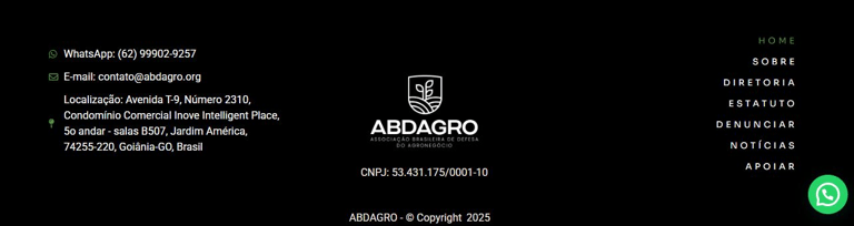 Conforme a denúncia recebida pelo Sindicato, a ABDAGRO foi fundada em 25/09/2023 e obteve o CNPJ 53.431.175/0001-10 em 08/11/2023. É presidida por Raphael Arantes Barra, neto de um conhecido pecuarista goiano, Linneu Barra - 15 dias depois da fundação, ainda em novembro de 2023, Raphael Barra, presidente da ABDAGRO, e Leandro Marmo, CEO do escritório, entrevistaram Linneu Barra no PodCast AgroemDebate, em iniciativa organizada pelo João Domingos Advogados. É importante destacar que o registro em cartório da ata de fundação e do estatuto ABDAGRO se deu em 08/11/2023. A ação civil pública contra o Banco do Brasil, por sua vez, foi distribuída em 02/11/2023, portanto 6 dias antes do prazo legal de um ano estipulado para dar legitimidade às associações autoras de ACPs. O advogado subscritor do estatuto da ABDAGRO é Mathews Henrique Araújo de Freitas, outro membro do João Domingos Advogados.