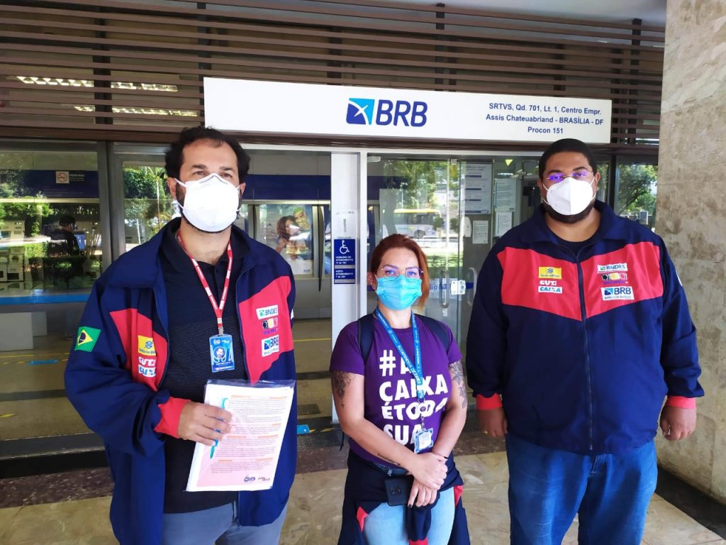 “Estamos realizando paralisações setoriais, para dialogar com a população. Nós, bancários e bancárias, estamos sendo extremamente prejudicados pela postura do GDF. Embora o governador Ibaneis tenha se comprometido com o Sindicato que iniciaria a vacinação da categoria neste final de semana (dias 3 e 4), o governo recuou de uma forma muito deselegante, fazendo a comunicação pela imprensa, ao invés de dialogar formalmente com a entidade, para que pudéssemos achar uma solução, considerando que somos uma categoria essencial, que está atuando na linha de frente desde o início da pandemia, faça chuva ou faça sol, no atendimento à população, correndo os riscos de adoecimentos e mortes”, ressaltou o presidente do Sindicato, Kleytton Morais.