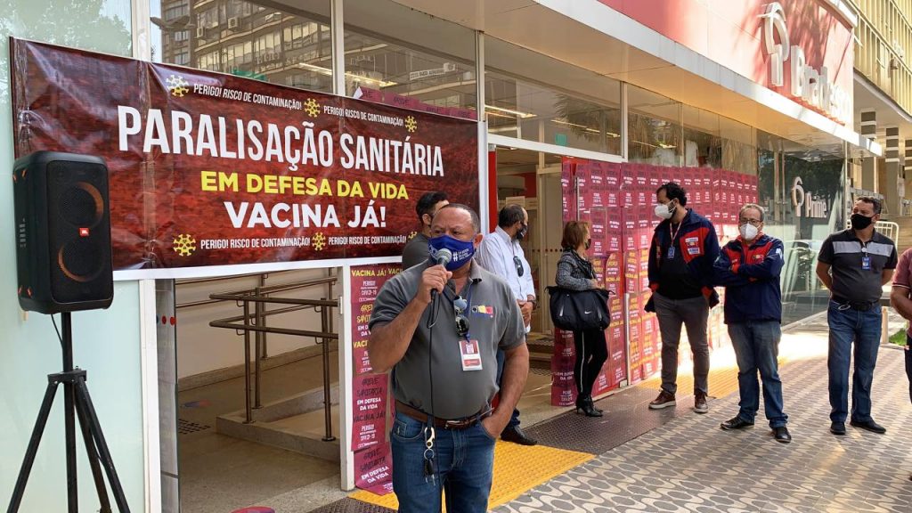 Kleytton esclareceu: “A greve hoje é sanitária. Esse é um grito de socorro e de alerta, porque os bancários e bancárias estão adoecendo e morrendo. E não é mais possível esperar diante da omissão das autoridades. Portanto, governador, cumpra a sua palavra. Vacine logo a categoria. E vocês, banqueiros, Fenaban, cumpram o papel importantíssimo que vocês têm, encontrando possíveis soluções a nível nacional, acelerando o processo de tramitação das matérias que cobram pela inclusão dos bancários no PNO, mas não somente esperando o seu trâmite no Legislativo, mas construindo alternativas junto ao próprio Executivo, como é o caso do Ministério da Saúde”.