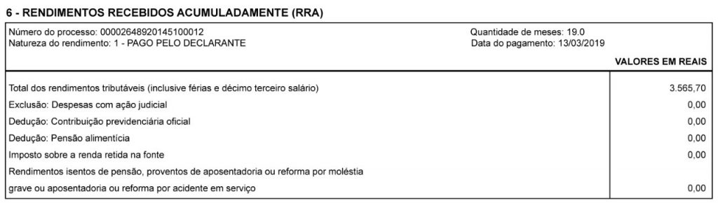 A assessoria jurídica do Sindicato alerta para o fato de que na declaração de IR devem constar a quantidade de meses (RRA), a data do pagamento e o número do processo.