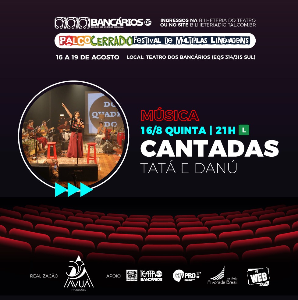 Na quinta-feira (16), a partir das 21h, é a vez do show ‘Cantadas’ com Tatá e Danú. A dupla sobe no palco do Teatro dos Bancários para o pré-lançamento do EP que dá nome ao show. Com uma musicalidade que encanta à primeira audição, o show autoral contará com a apresentação das músicas do disco “O Leve”, como “Lavadeira”, “Rosalina e Margarida”, “Vida Dividida” e a faixa título, além das canções do trabalho mais recente, “Cantadas”.