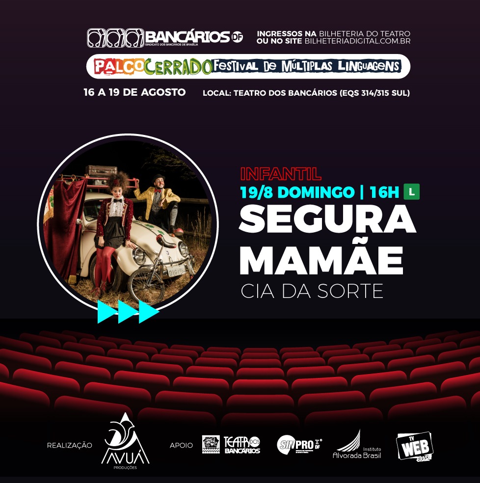 Domingo (19) é dia de espetáculo infantil 'Segura Mamãe', com a Companhia Sorte. Dona Lelê virou a dona do circo e tenta colocar o Palhaço Trevolino para trabalhar. Agora, é uma trapalhada atrás da outra. O espetáculo, que começará às 16h, é interativo e mescla a palhaçaria às técnicas de equilibrismo, malabarismo e mágica, sempre com a participação da plateia.