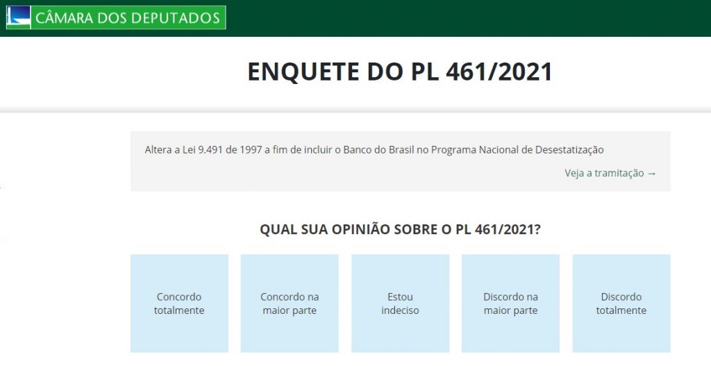 Clique aqui e participe da enquete pelo BB público. Vote em ‘discordo totalmente'.