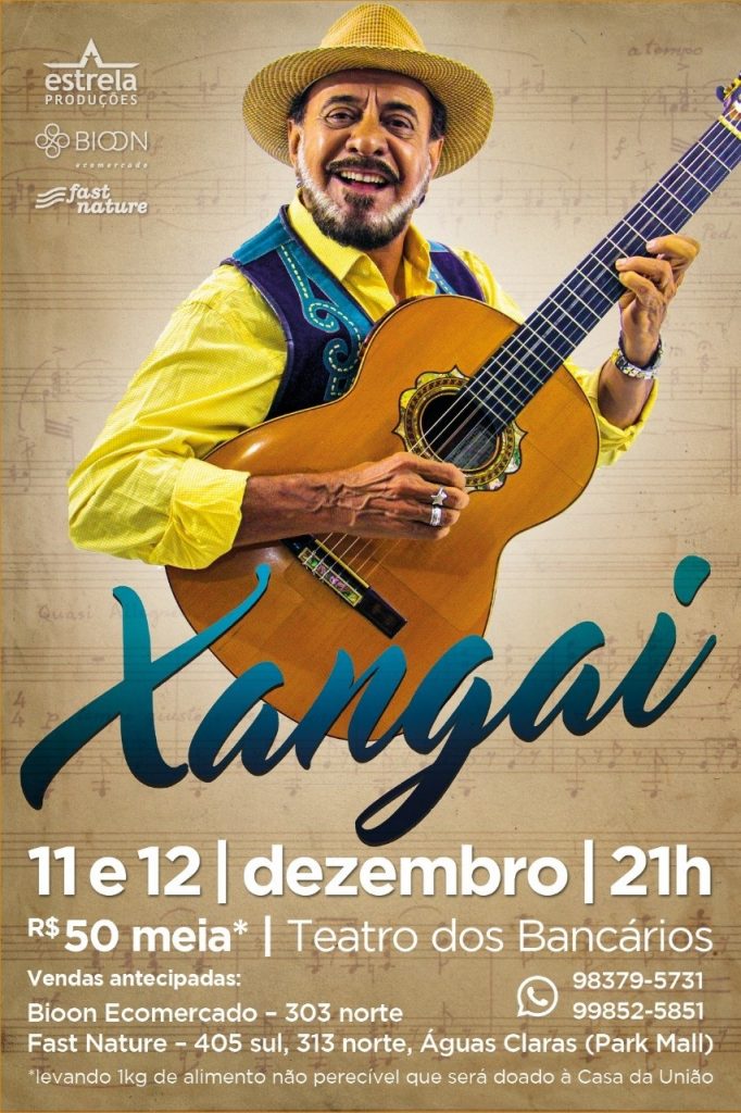O cantor e compositor baiano Xangai volta a Brasília para duas apresentações no Teatro dos Bancários. Com mais de 40 anos de carreira, o artista é um dos principais representantes da música de viola no país. Serão dois dias de show: 11 e 12 de dezembro, a partir das 21 horas.