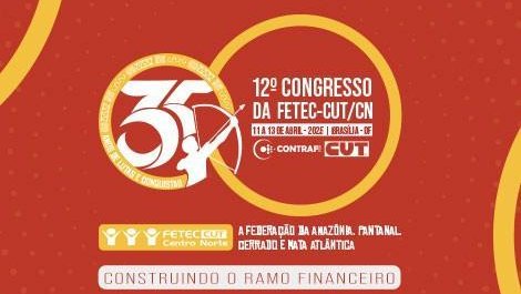 A Federação dos Trabalhadores em Empresas de Crédito do Centro-Norte (Fetec-CUT/CN) realizará entre esta sexta-feira 11 de abril e o domingo 13, em Brasília, o XII Congresso da Federação, que entre outros temas debaterá a conjuntura econômica e política internacional e nacional, aprovará o plano de ação sindical para os próximos anos e elegerá a nova direção da entidade para o período 2025/2029.
